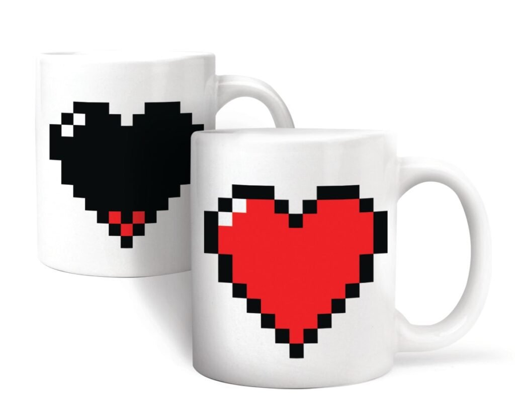Vi er nok mange, der i princippet fler os som levende dde, indtil vi har fet vores morgenkaffe. Men s tager man den frste slurk og mrker, hvordan livet fr tag i n, og ude i horisonten opstr en magisk regnbue og … h, nok om det.Pixelhjertekrus